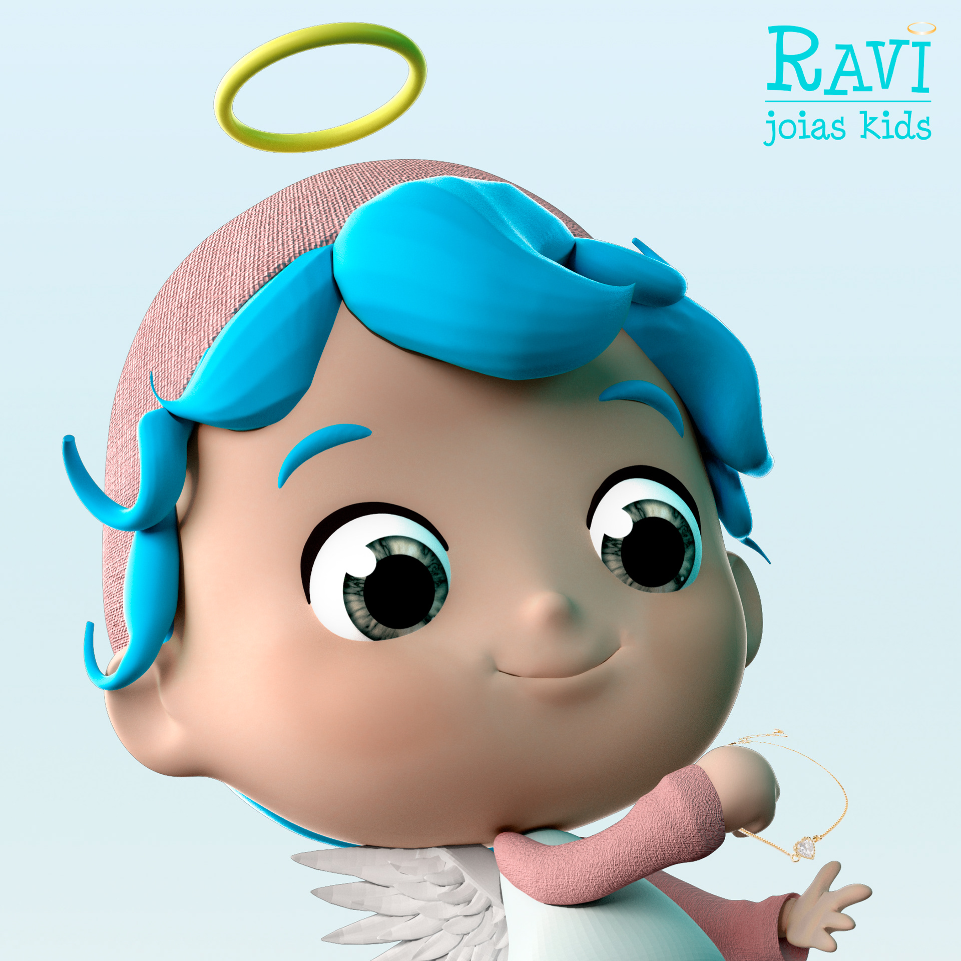 A 3D character and lettering development to Ravi joias kids.