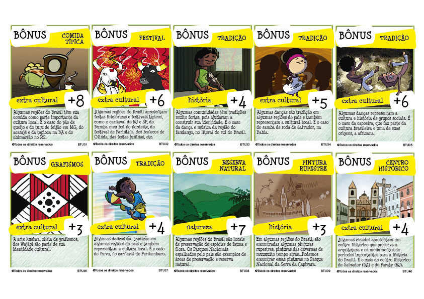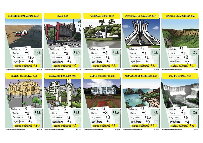 Digital illustrations of Brazil's touristic places and Brazil's culture made to an educational card game.