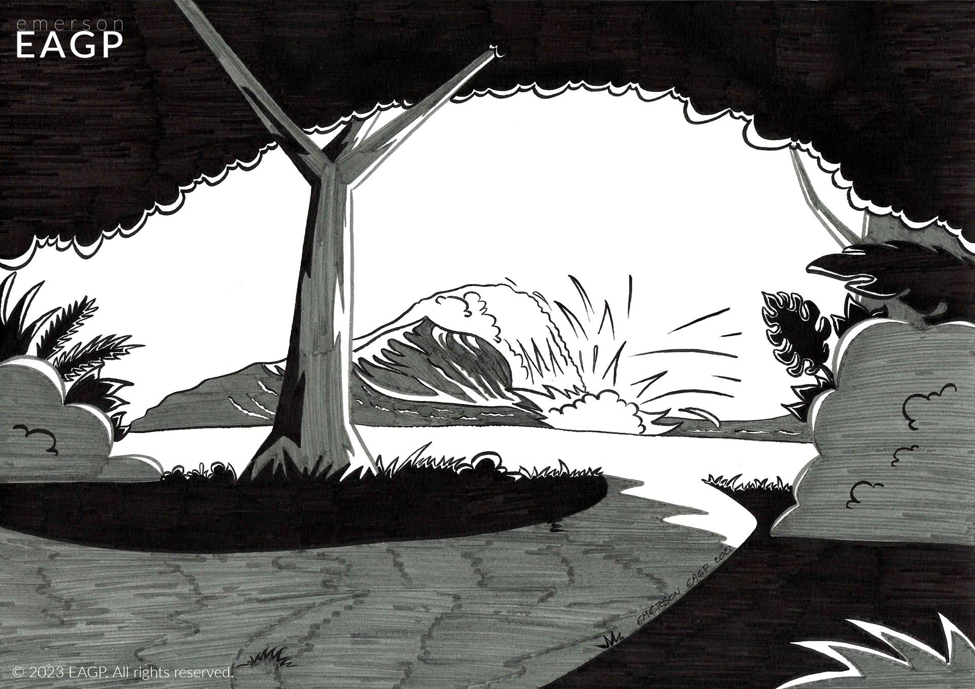 Landscape illustrations made in 2 different styles to an art book published by Ases da Literatura.